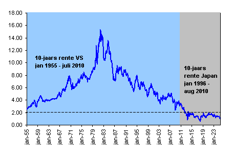 Figuur 1. Economisch scenario van aaneengeknoopte Amerikaanse en Japanse rente gegevens.